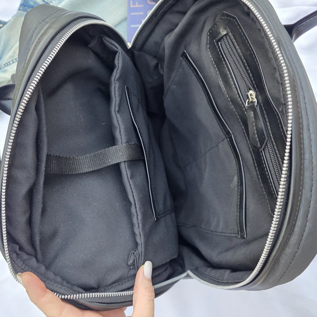 - Interior forrado, contiene: 1 bolsillo con cierre, 3 bolsillos simples, apartado para notebook de 15" a 17".