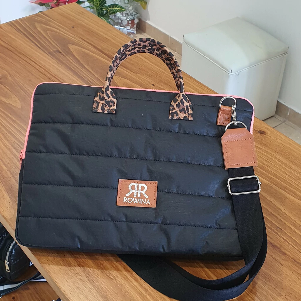 - Confeccionado en tela Puffer negro opaco y detalles a contra tono en cuero sintético animal print suela.